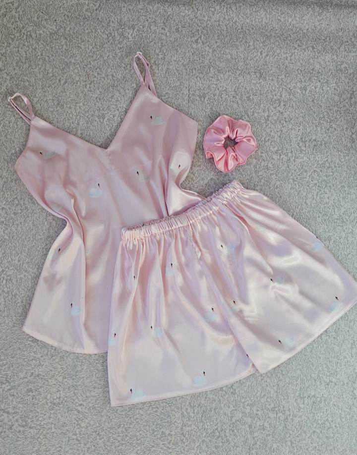 ناموجودتاپ وشلوارک طرح قو صورتی کد درسایت ۱۵