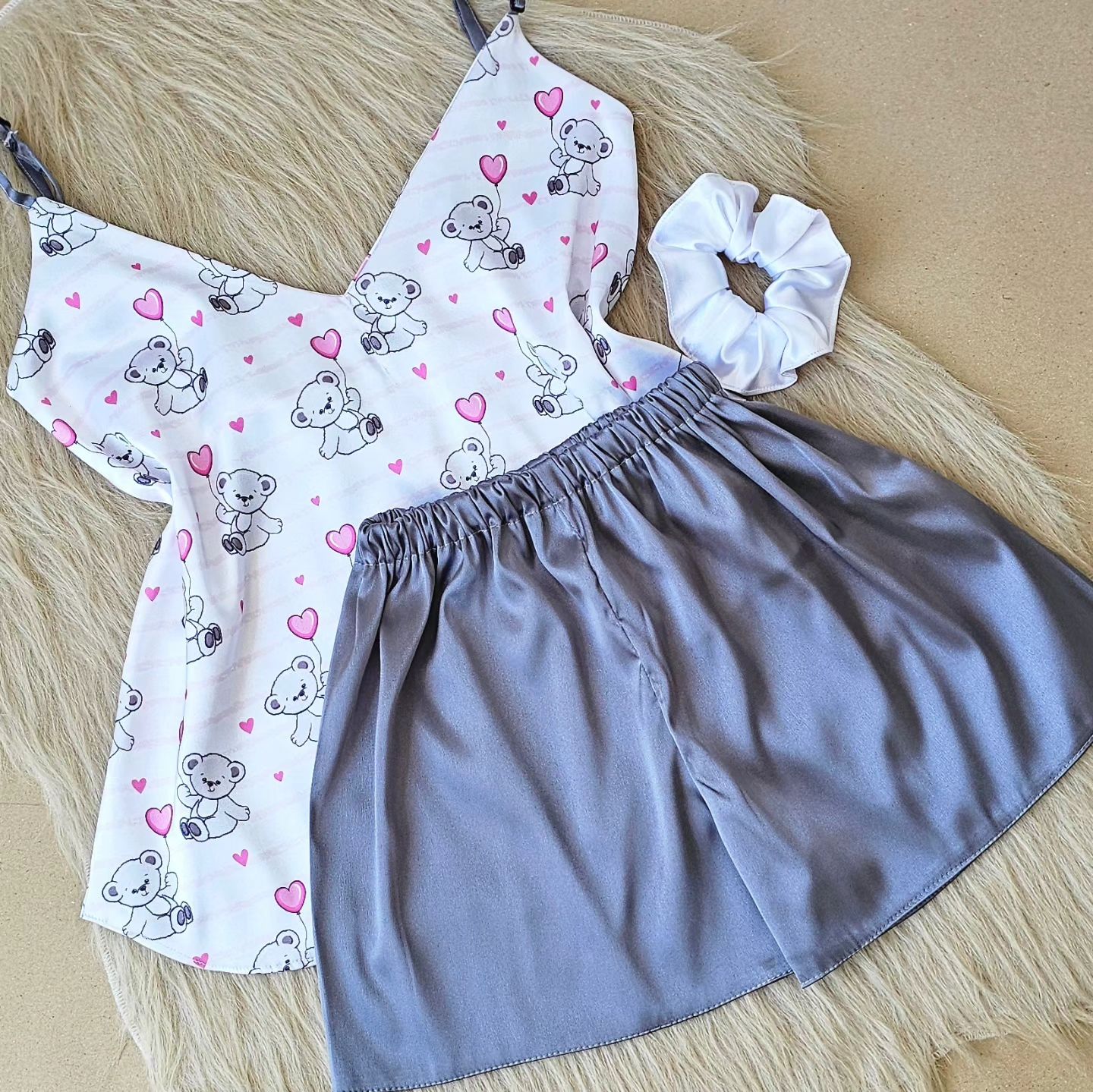 تاپ شلوارک طرح خرس قهوه ای کد درسایت ۱۷